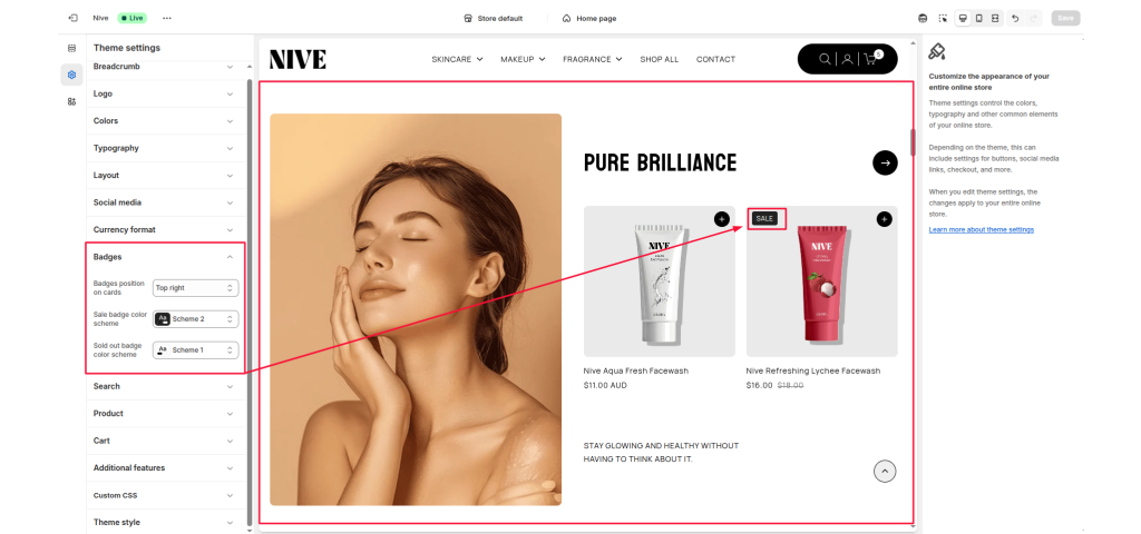 You can set badge position on cards top left/ top right and bottom left/ bottom right.