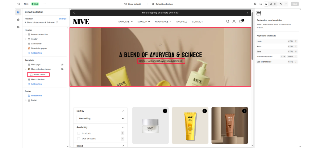 Breadcrumbs enhance user experience, improve SEO structure, and maintain contextual navigation across product, collection, and content pages.