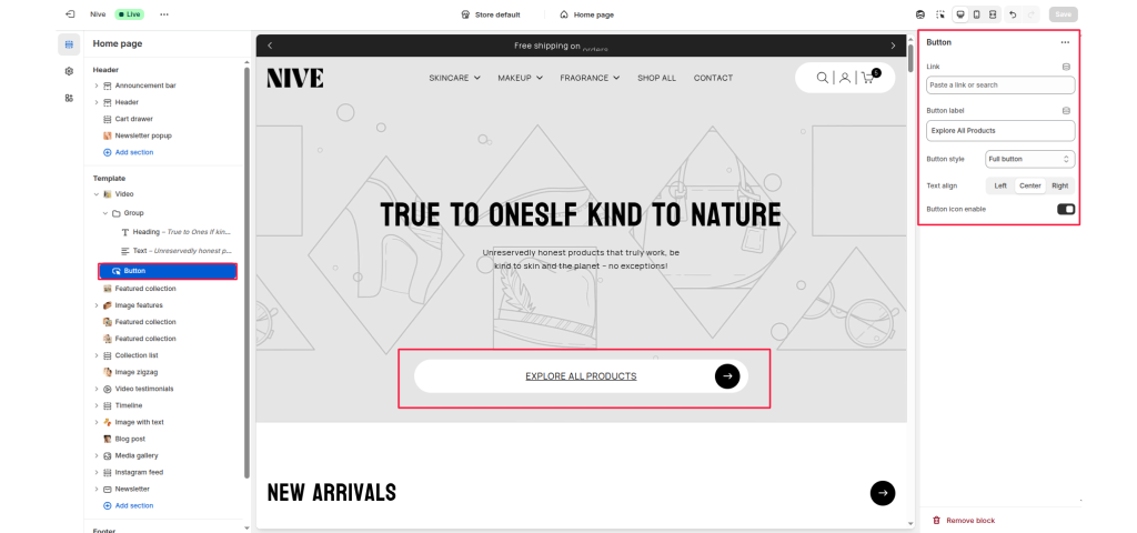 This block is commonly used in hero sections, featured content, image banners, and promotional sections to direct customers toward important areas of the store.