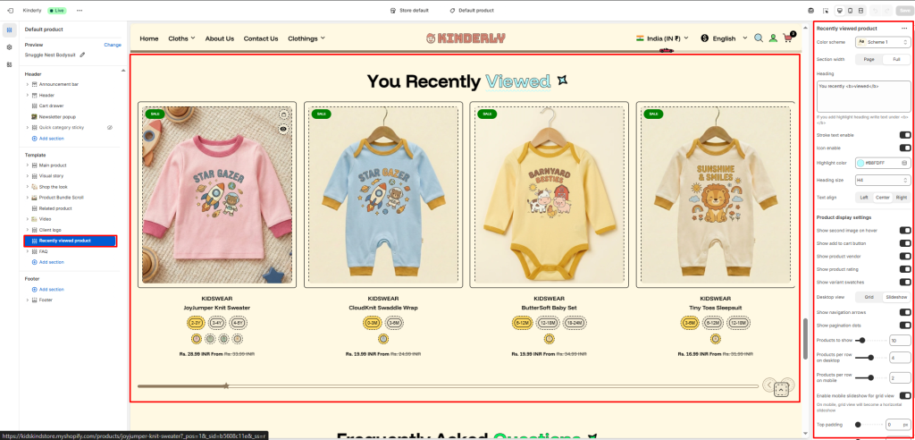 The Recently Viewed Product section automatically displays products the customer has previously viewed, helping them quickly return to items they showed interest in.