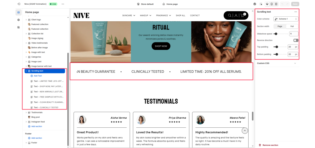 The Scrolling section is designed to showcase various calls-to-action and promotions dynamically. This moving display captures the attention of visitors, making it an effective tool for highlighting key offers and driving engagement.