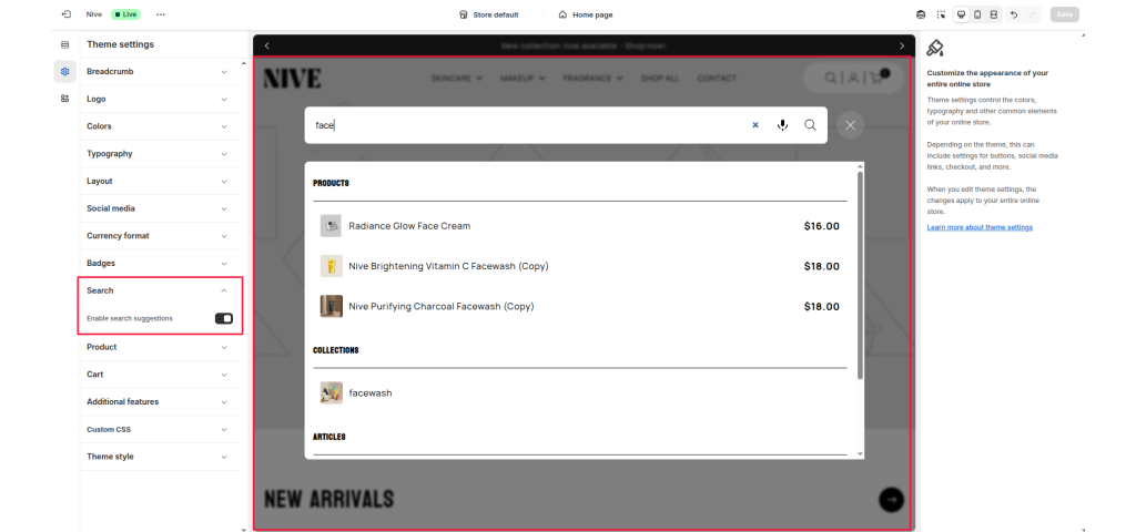 When this option is enabled, the system will automatically provide relevant search suggestions as users type keywords into the search bar, helping them quickly find content or products they may be interested in.